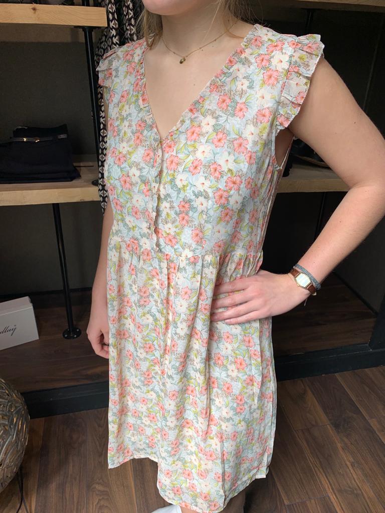 Jolie petite robe à fleurs sans manches décolleté en V de couleur pastel